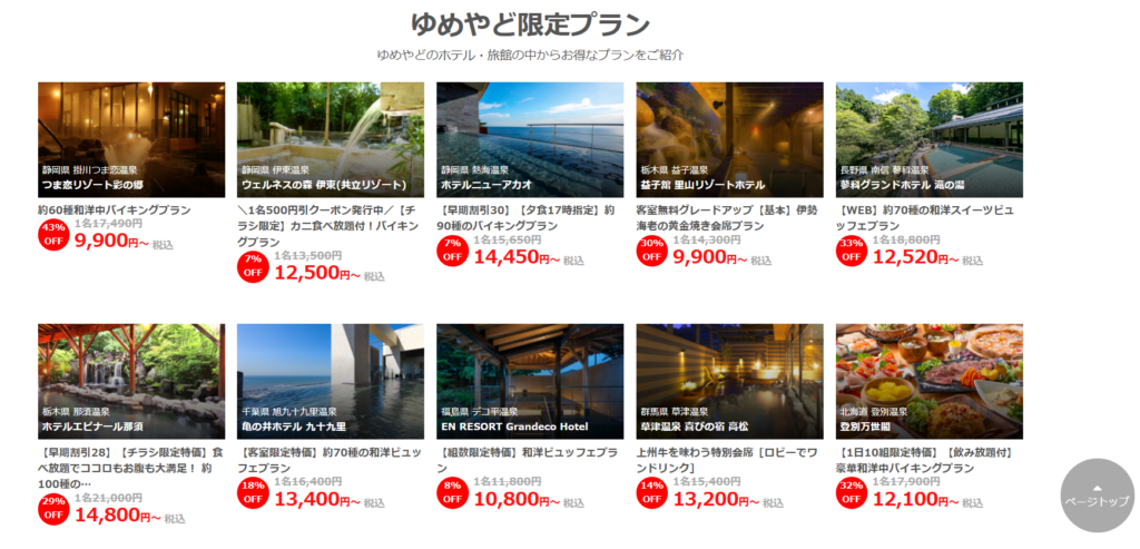 特に注目なのが「ゆめやど」。厳選された宿のみ掲載されているため、失敗しにくく、満足度の高い旅行が実現できます。