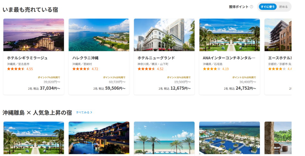 楽天トラベルは「お得に旅行したい方」に最適なサービスです。ポイント還元を活用することで、実質的な宿泊費を抑えることができるため、コスト重視の方には特におすすめです。