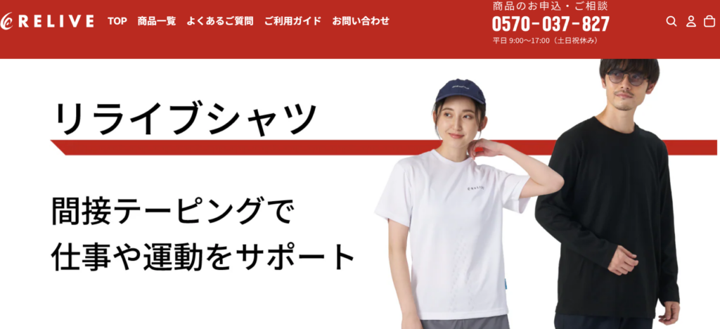 リライブシャツは、独自のテーピング技術を応用した設計で、着るだけで体の動きをサポートすることを目的としたウェアです。血流や筋肉の動きを意識した構造になっており、日常生活での疲労軽減をサポートします。