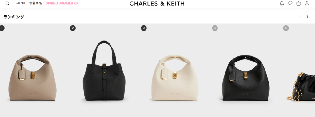 CHARLES & KEITHは、デザイン性・価格・ブランド人気のバランスが非常に優れているバッグブランドです。